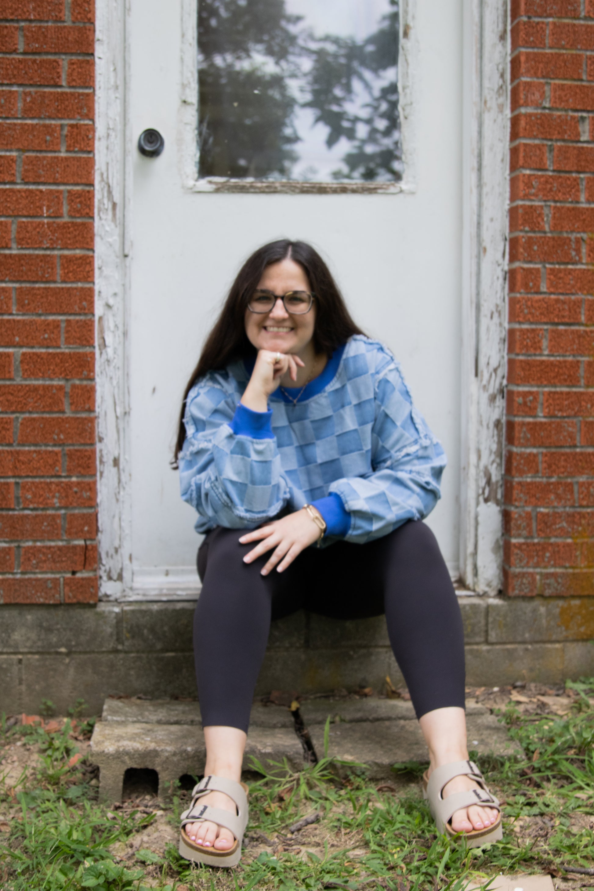 This light denim pull over steals the show with its bold checkered print and edgy raw edges, perfectly finished with a pop of royal blue trim. It’s the ultimate compliment magnet for day or night, and with denim that’s light and comfy, you’ll feel as good as you look!