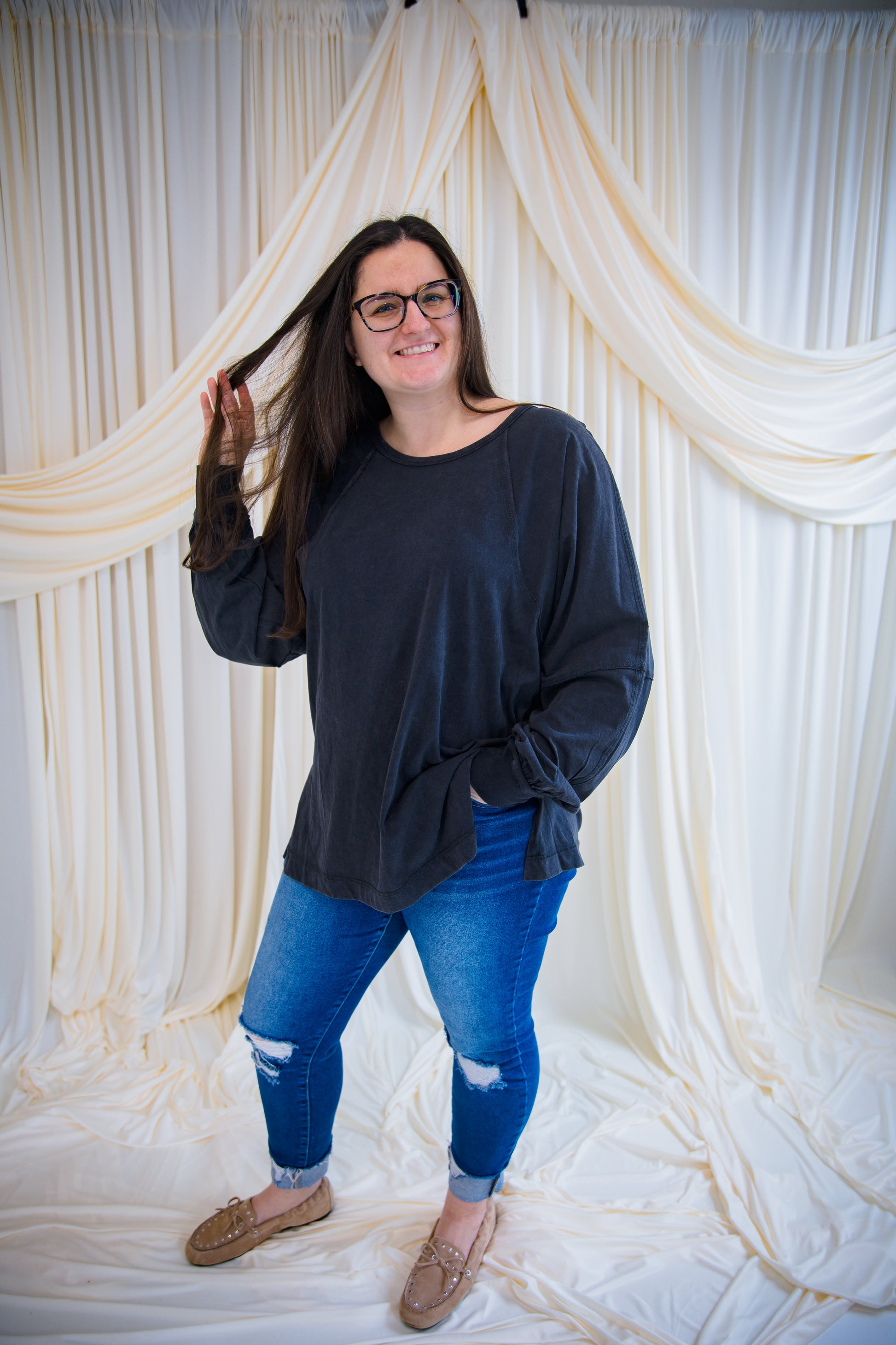 Get cozy and casual with this oversized long sleeve top featuring a classic crew neck and relaxed fit. The drop shoulder seams and generous sleeve length add to its laid-back vibe, while the side slits give a modern touch and improve movement. Made from 100% cotton - runs oversized, so stick to your true size!